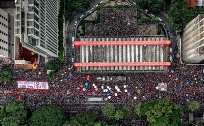 Las manifestaciones, convocadas por la Unión Nacional de los Estudiantes (UNE), con el apoyo de sindicatos, tuvieron lugar en al menos 100 ciudades de 22 de los 27 estados del país, entre ellas Sao Paulo, la mayor del país, Río de Janeiro, y Brasilia.